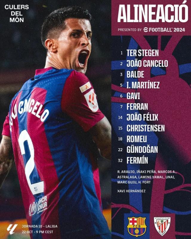 西甲第10轮,巴萨主场迎战毕尔巴鄂竞技,上半场费利克斯击中横梁,特狮贡献神扑。下半场小将马克·吉乌迎来首秀,上场第1分钟便单刀破门,最终凭借这一粒进球巴萨1-0小胜毕尔巴鄂,主场全取3分。